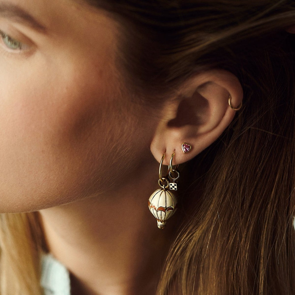 De Checkered dice charm goldplated van Anna+Nina is een multifunctioneel hangertje in de vorm van een dobbelsteentje. Je kunt dit hangertje aan een oorring of aan een ketting hangen. Het hangertje is gemaakt van 925 sterling zilver verguld met 14 krt goud en is versierd met zwart emaille.