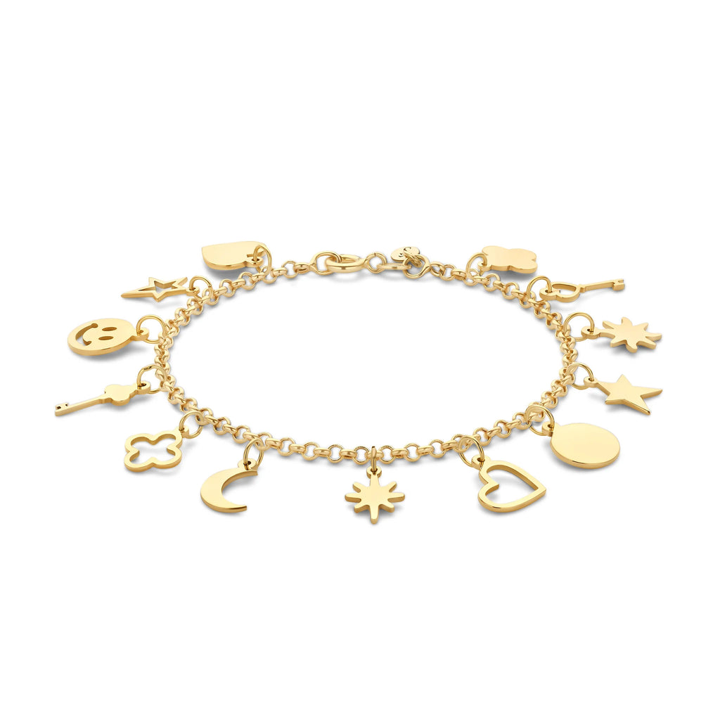 De Charm bedel bracelet van Just Franky heeft een jasseron schakel waar je eventueel bedels aan kunt hangen maar de Charm bracelet is ook mooi te dragen zonder bedels eraan.