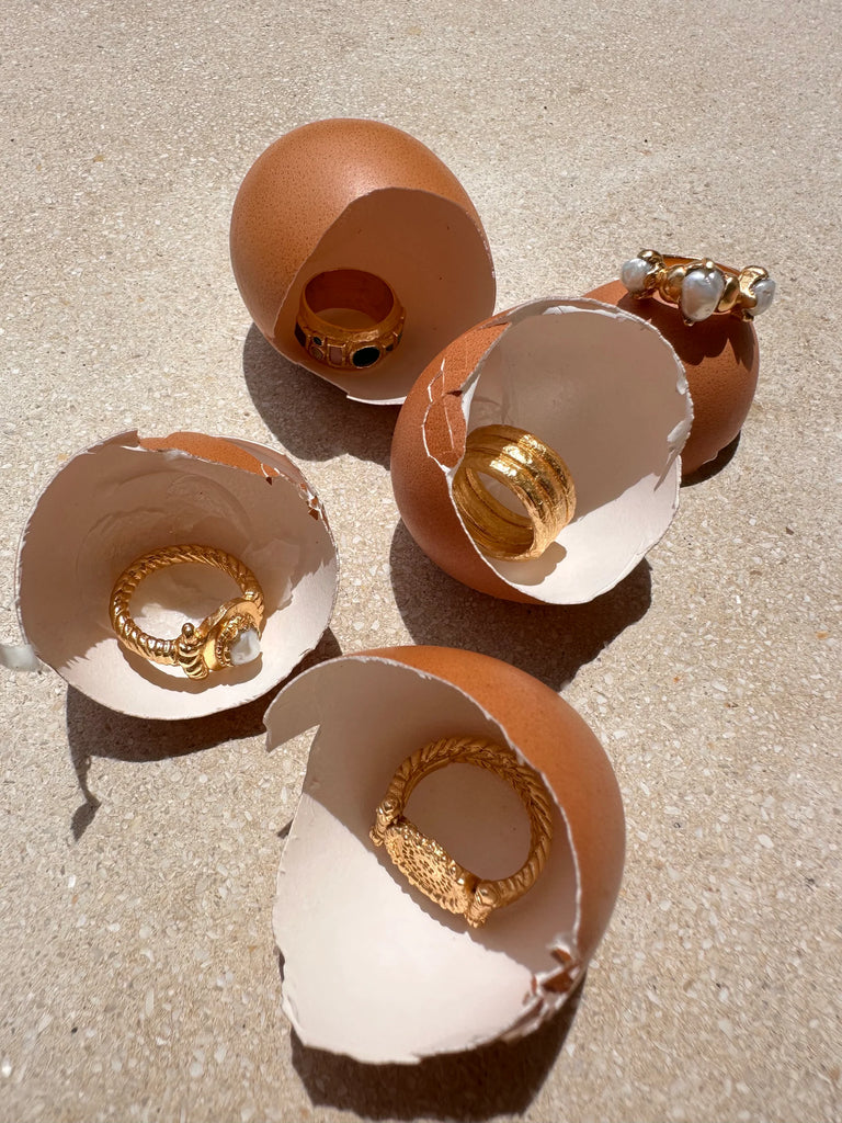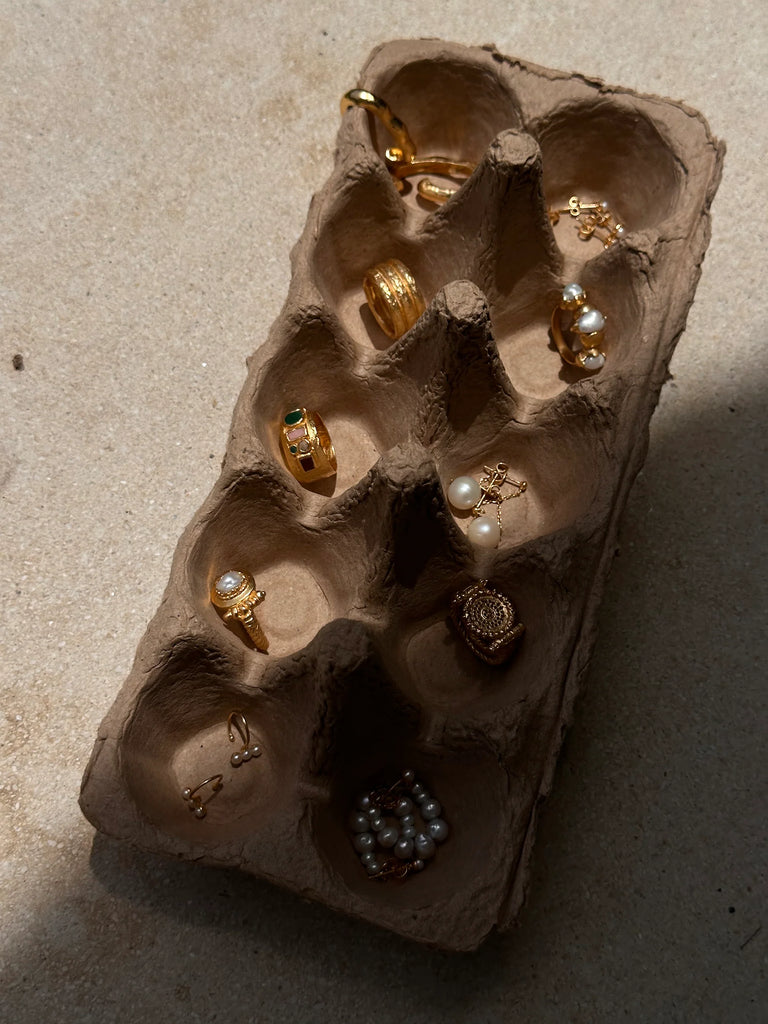 De Keanu Ring van Mimi et Toi combineert een antieke stijl met Parijse elegantie en een speelse charme, waarbij parels centraal staan in het ontwerp.