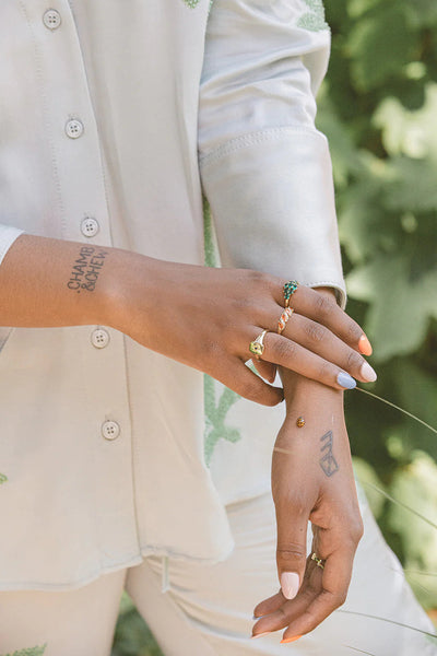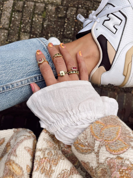 De Ella ring black gold van A New Day Amsterdam is een vintage geïnspireerde ring. De ring heeft de vorm van een zegelring en is gemaakt van brass verguld met 18 krt goud en gezet met een zwarte zirconia steentje. Combineer meerdere ringen en kleuren met elkaar tot jouw persoonlijke stijl.