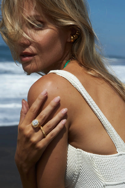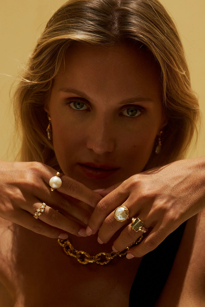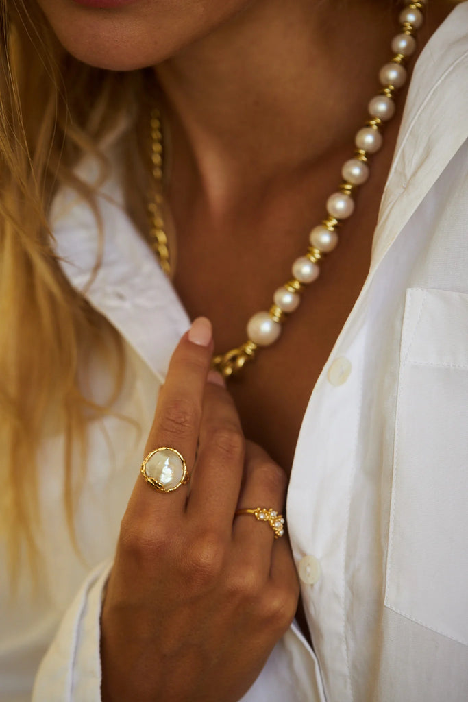 Droom weg met de elegante Joe barokparel ring – een opvallend statement piece, perfect voor zwoele zomerdagen én nachten.